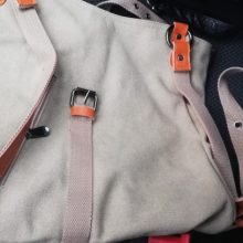 Came quickly. packed carefully, with air elements for transportation. Amount/backpack summer more than all season. Tarpaulin. Accessories are not expensive. Closes on 2 buttons on the sides and a magnetic fastener in the middle. Zipped pockets on the outside and inside. The bottom is stitched but not too tight-all the backpack. A little There are threads sticking out, but not critical. Can be recommended