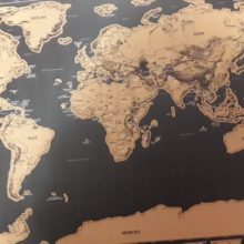 Covered with premium gold foil which lays above a beautiful colorful world on a high-end matte black sheet. We use some of the finest materials to create the most stunning maps.