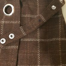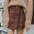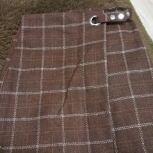 Exude warmth and elegance on chilly winter days in this wool plaid mini skirt. This charming wraparound skirt flaunts classic good looks that make it the picture of wintery sophistication but leaves enough room for you to play around with your favorite styles and fashion preferences. It has a smart A-line silhouette and closes with a chic circular belt buckle detail at the waist. Two vintage buttons on the belt perfectly complement the stylish plaid print that adorns this brown mini skirt.